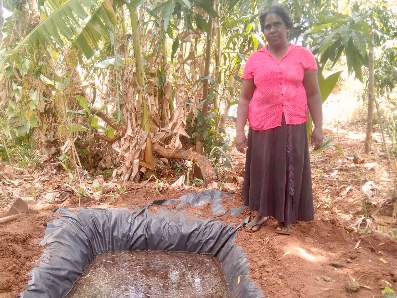 Karunawathi ontvangt de watertank van Egbert. Ze kreeg de kans om de watertank naar haar eigen tuin te halen toen Egbert in Sri Lanka was. Karunawathi was blij met dat moment. Net als andere deelnemers aan het thuiskweekproject kan ze water opslaan in de tank tijdens regenachtige periodes om een constante watervoorziening voor haar tuin te garanderen.